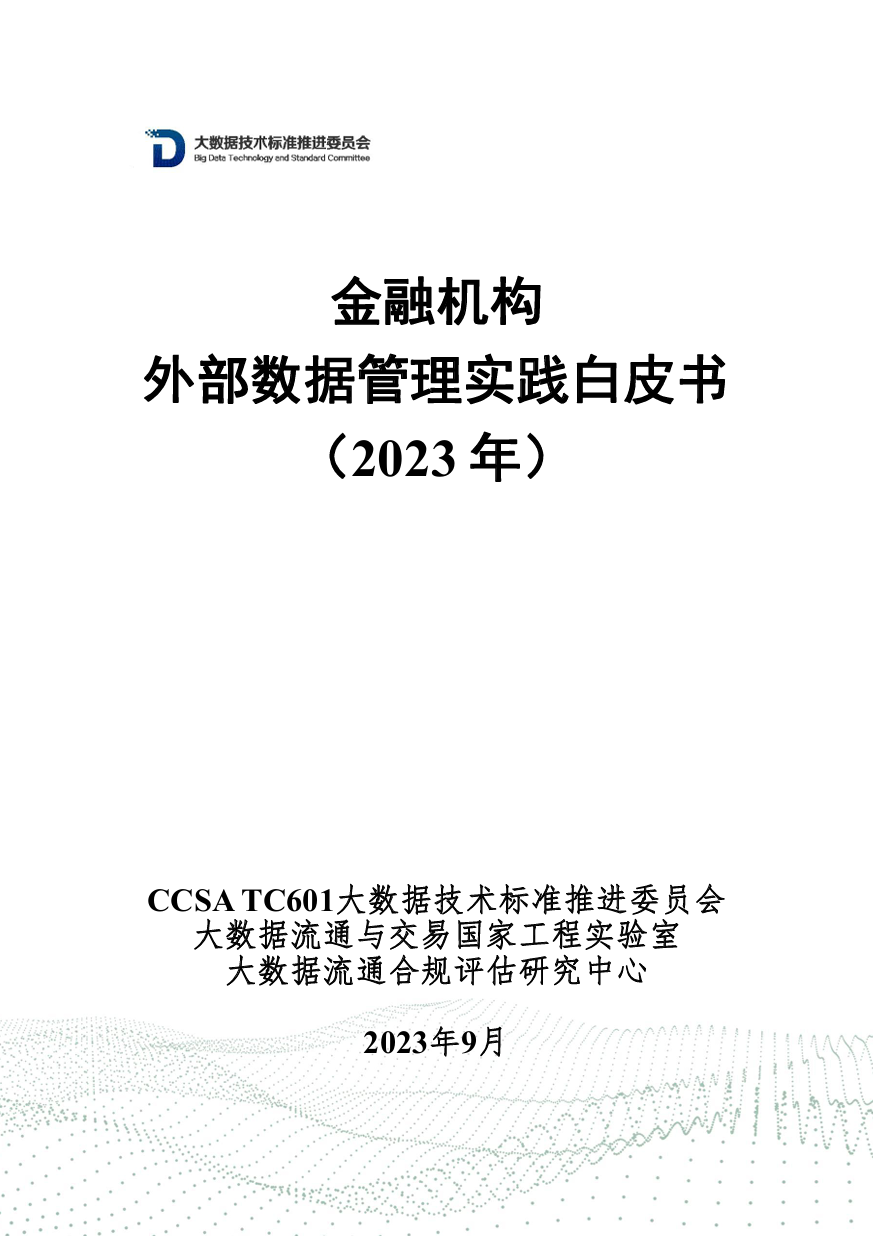 金融机构外部数据管理指金融机构通过构建组织架构、明确各部门职责要求、建立和实施系统化制度、流程和工具等方式,针对外部数据进行引入、应用、共享和退出的全流程管理,确保外部数据的合法引入、合规使用、充分共享和有序退出,并在经营管理中最大化发挥外部数据价值的动态过程。